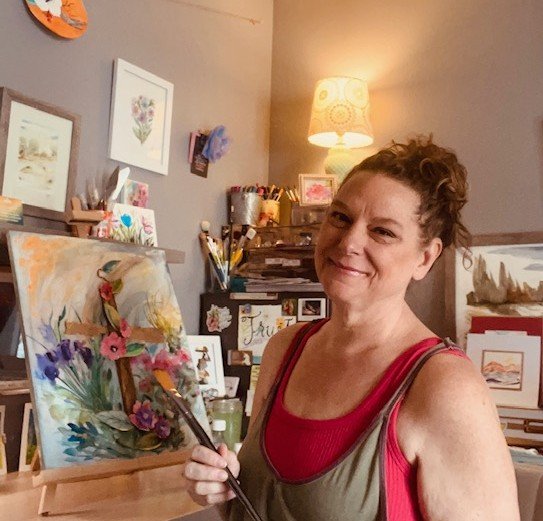 I am a Colorado artist living in Golden. My day job is as a mental health therapist for over 30 years, my art practice has always allowed me to look away from deep pain and dark themes to the light of the natural world. My art holds notes of whimsy, natural wonder and quiet solitude, the things that restore my own soul. Although I have done most types of art through the years, my heart belings to watercolor. What frustrates others about this medium, specifically control, is my favorite part. Ultimately it cannot be completly controled and one must surrender to it. Usually inspired first by color or even a specific paint (granualting colors I am looking at you!) The combination of color and mood drive my work. I love hidding specific bits of wonder in my works for those who look deeper, I am a therapist after all.